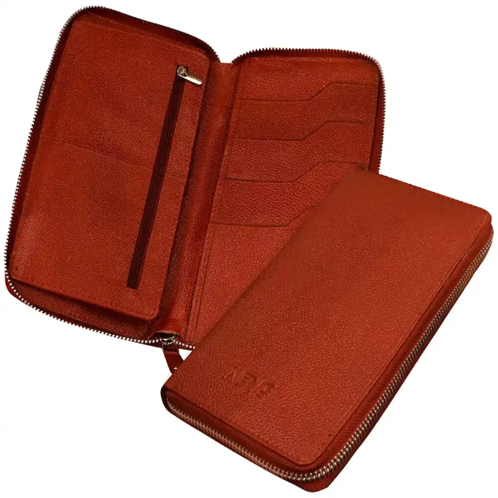 This passport pouch is made from leather that provides a rich feeling. It comes with a unique feature: it has a sim card slot which is great to keep different sim cards when travelling. It has smooth and durable zippers which are comfortably open when travelling.